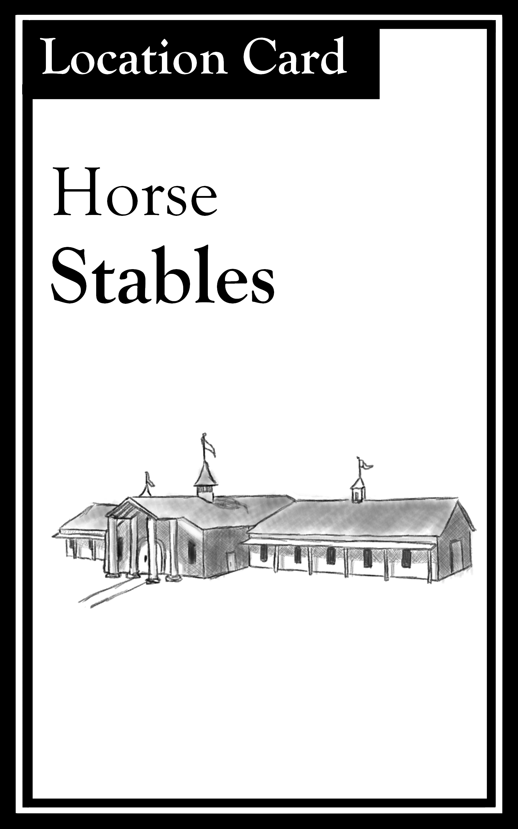 This is the Location Card for the notable horse stables in the story. The physical card has an image of a farm and stable. The audio for this card explains who the stables belong to and why they’re important.