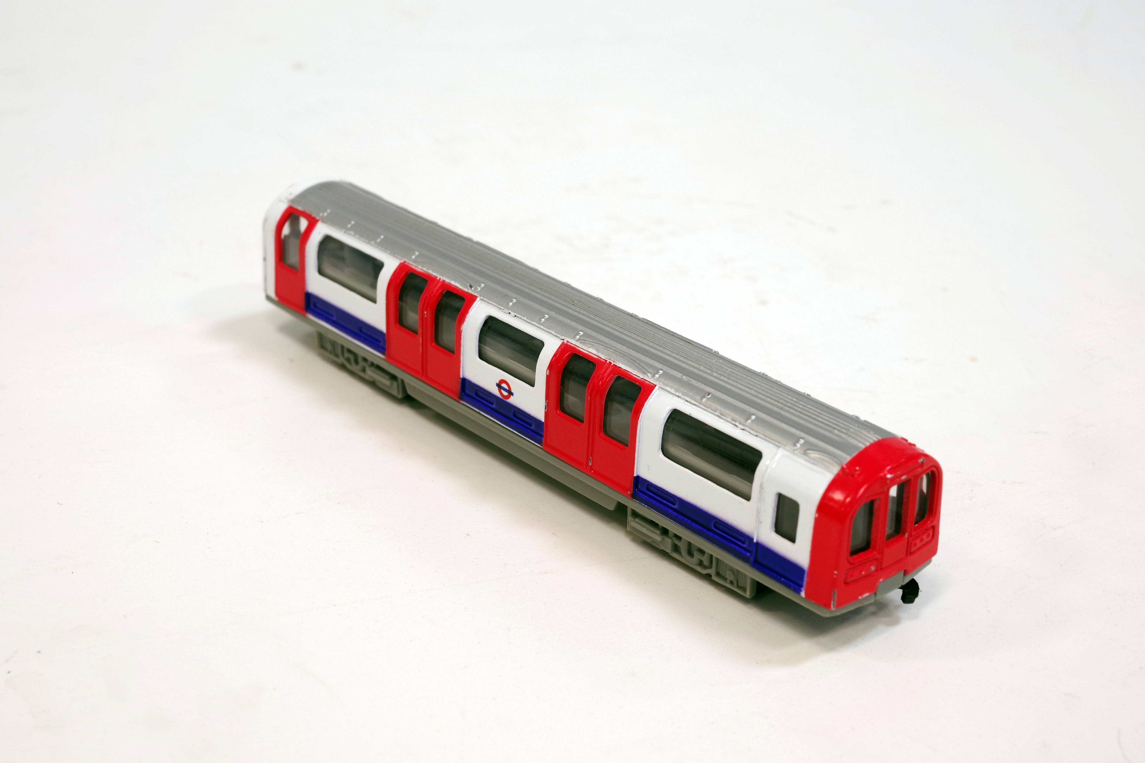 Despite carrying vast numbers of passengers each day, the Northern Line has often relied on older rolling stock transferred from other lines including 1956 and 1959 stock from the Piccadilly Line and 1965 stock moved from the Central Line.. The model shown here represents the new rolling stock brought in to replace the entire Northern Line fleet between 1997 and 1999. In addition to the red, white and blue livery, the latest trains were equipped with automated announcements and quick-close doors.