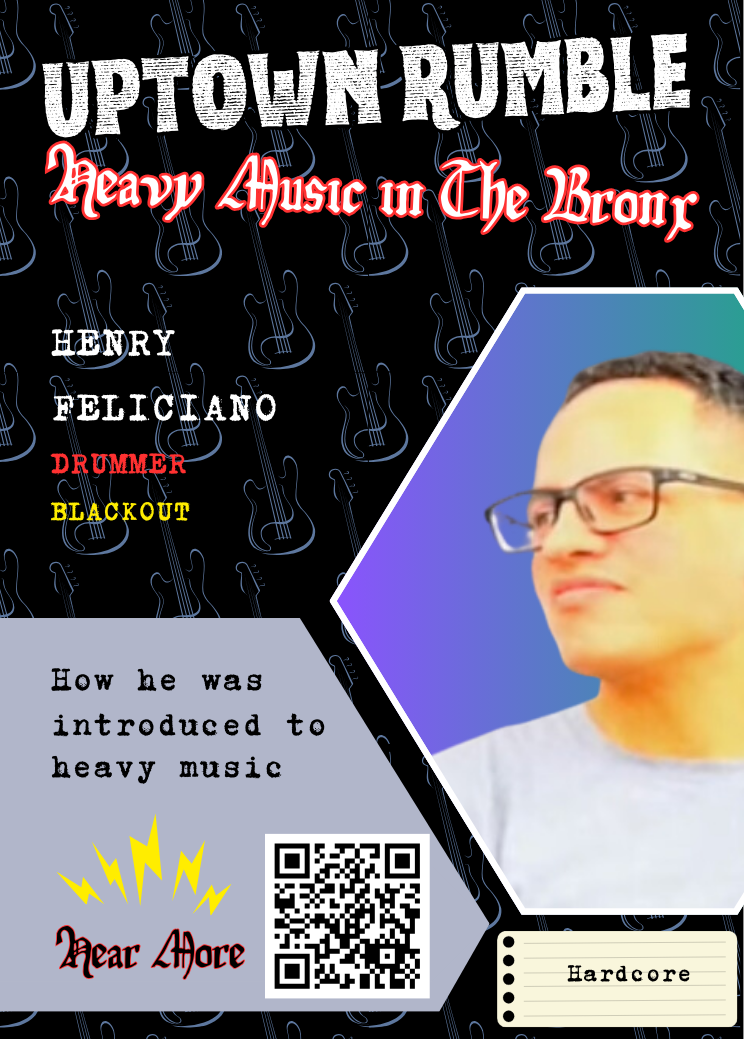 Clip in mp3 format on How he was introduced to heavy music from a full-length oral history recorded with Henry Feliciano (Blackout) for Uptown Rumble: Heavy Music in The Bronx