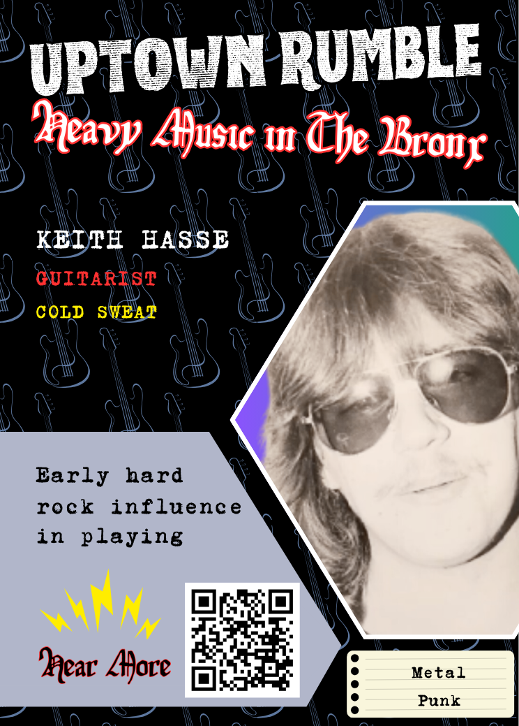 Clip in mp3 format on Early hard rock influences in playing from a full-length oral history recorded with Keith Hasse (Cold Sweat) for Uptown Rumble: Heavy Music in The Bronx