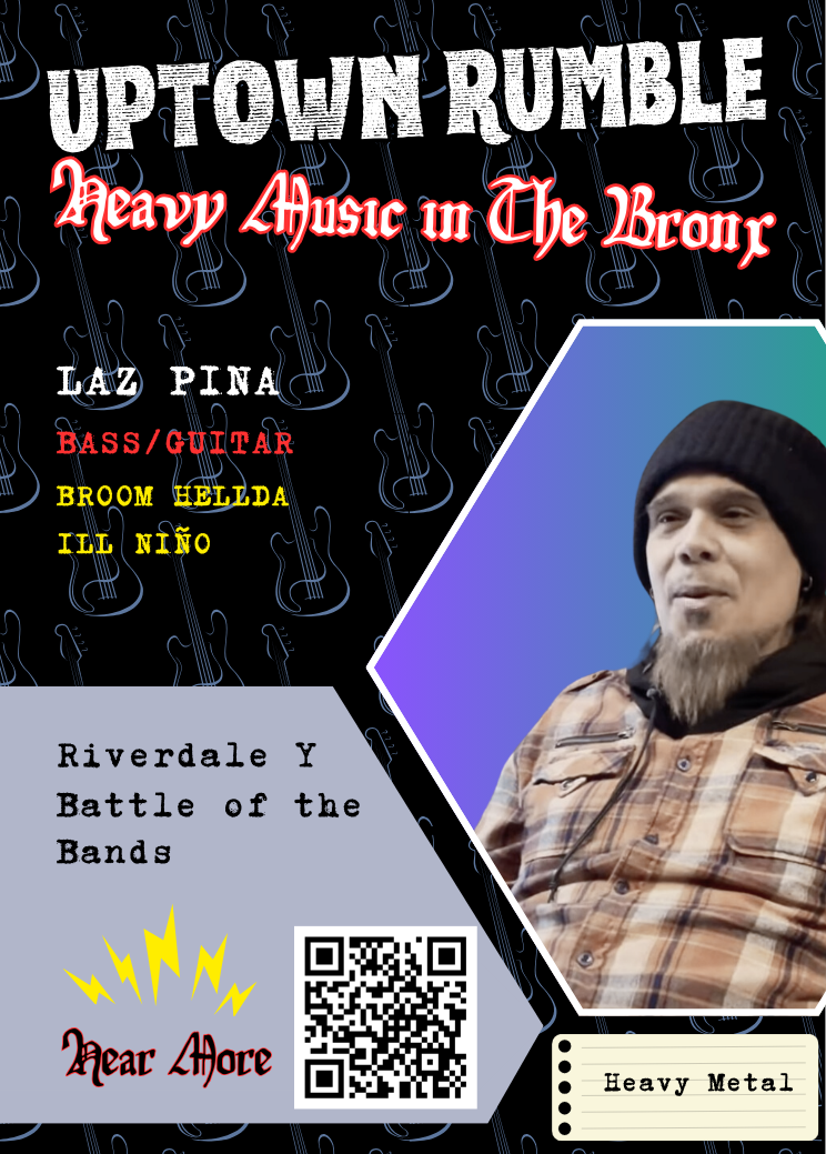 Clip in mp3 format on Riverdale Y Battle of the Bands in 1987/1988 from a full-length oral history recorded with Laz Pina (Broom Hellda/Ill Niño) for Uptown Rumble: Heavy Music in The Bronx