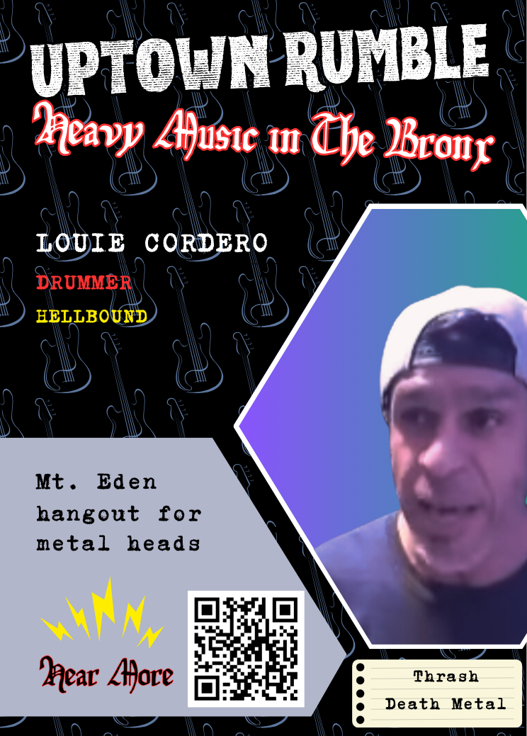 Clip in mp3 format on Mt. Eden hangout spot for metal heads from a full-length oral history recorded with Louie Cordero (Hellbound) for Uptown Rumble: Heavy Music in The Bronx