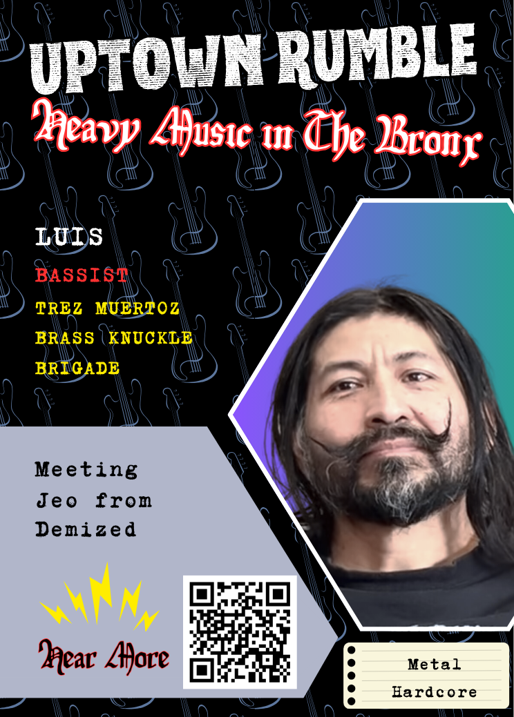 Clip in mp3 format on Meeting Jeo from Demized from a full-length oral history recorded with Luis (Trez Muertoz) for Uptown Rumble: Heavy Music in The Bronx