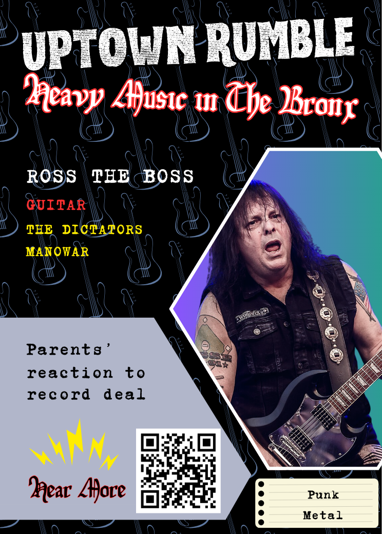 Clip in mp3 format on Parents' reaction to The Dictators getting a record deal from a full-length oral history recorded with Ross The Boss (The Dictators/Manowar) for Uptown Rumble: Heavy Music in The Bronx