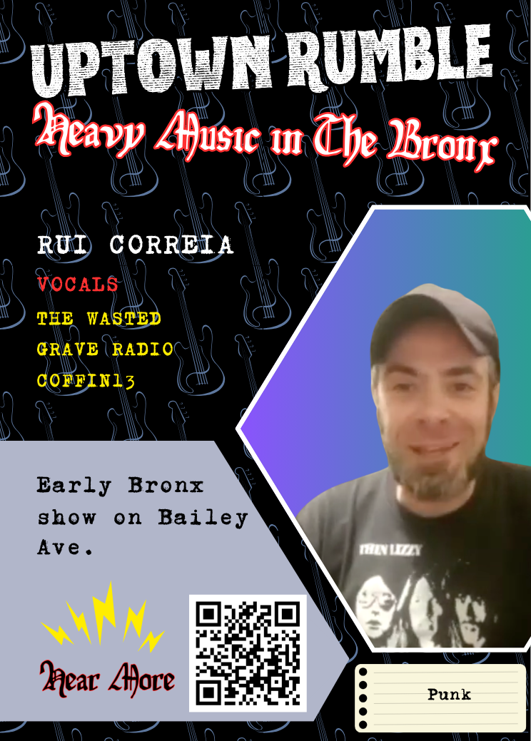Clip in mp3 format on Early Bronx show on Baily Ave. from a full-length oral history recorded with Rui Correia (The Wasted) for Uptown Rumble: Heavy Music in The Bronx