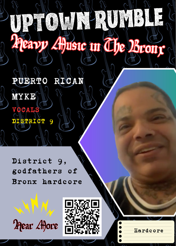 Clip in mp3 format on District 9, godfathers of Bronx hardcore from a full-length oral history recorded with Puerto Rican Myke for Uptown Rumble: Heavy Music in The Bronx