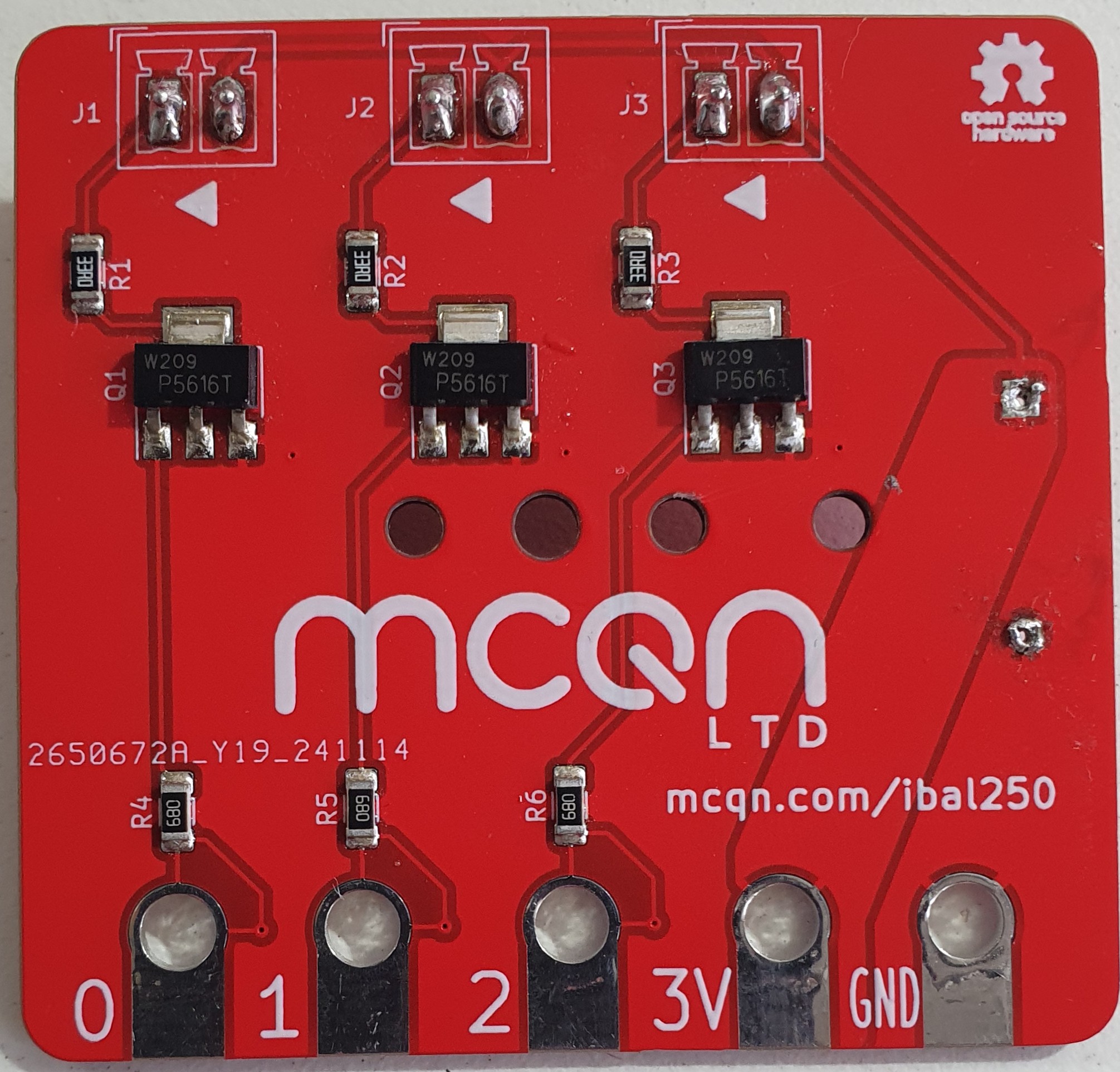 We've been experimenting with more ways to hook up LEDs to bikes: this board connects to a micro:bit to power it from batteries and let it control three LED noodles.