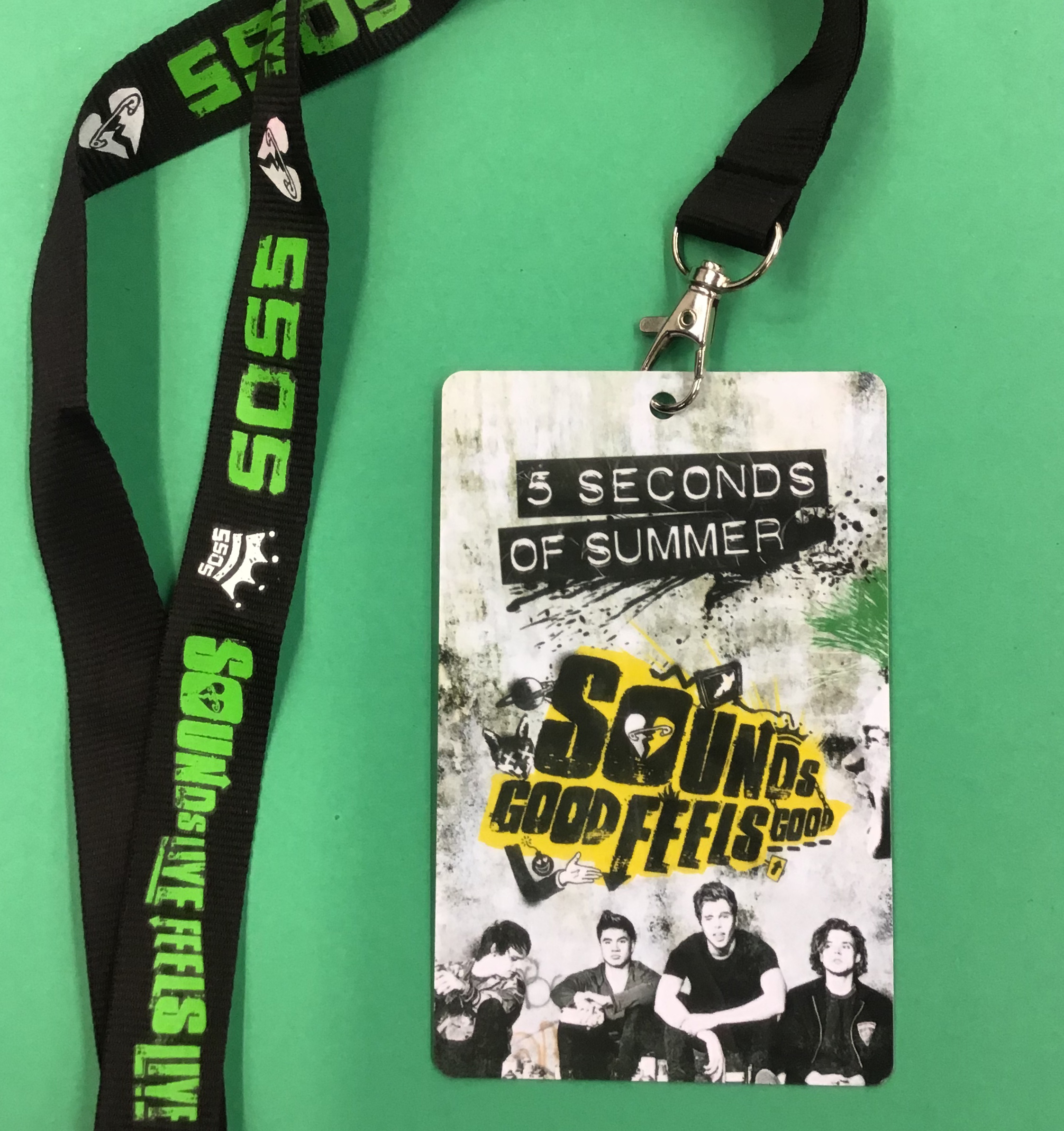 This is a different 5 seconds of summer lanyard, which I got from their 2016 tour. I have a lot of memories from this tour as they seemed so close especially Calum Hood. They seemed close at the end of the gig as they threw T-shirt’s out to the crowd and I was so close to getting one.